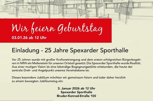 Die Spexarder Sporthalle wird 25 Jahre alt. Im Januar 2001 wurde der Sportbetrieb aufgenommen. Der Weg zum Bau war schwierig und wurde mit einem Bürge…