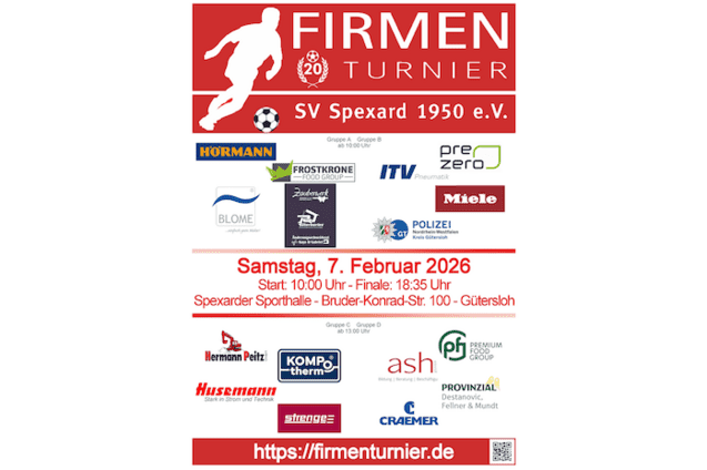 Ein sportliches Jubiläum steht bevor: Am 7. Februar 2026 lädt der SV Spexard zur 20. Austragung des beliebten Firmenturniers ein. Seit mehr als zwei J…