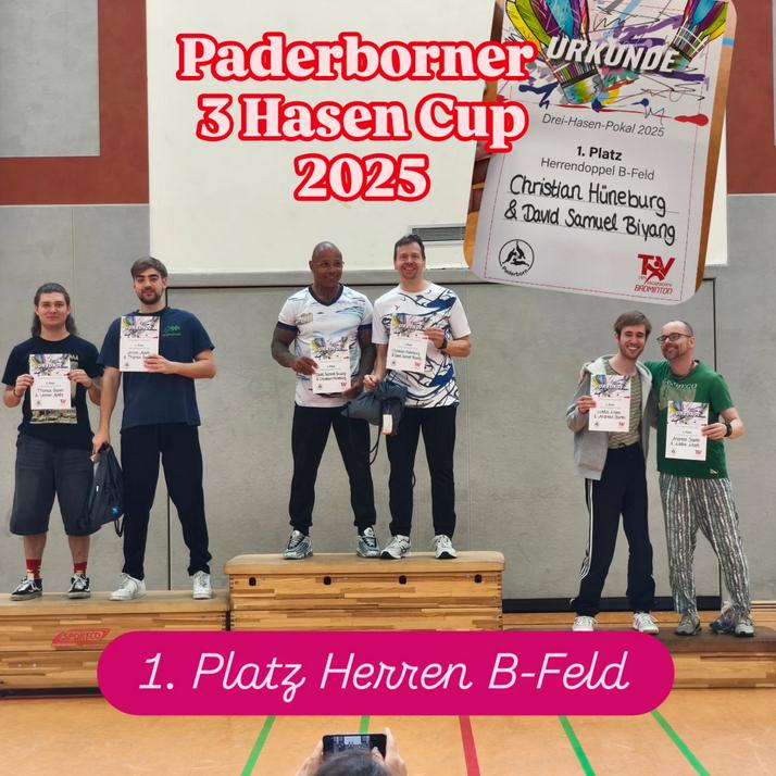 Nach der Saison ist vor der Turnierzeit. Beim 1. Paderborner "Drei Hasen Cup" gingen David und Christian im B-Feld an den Start. Es konnten alle alle Duelle gewonnen und man siegte verdient im B-Feld. Herzlichen Glückwunsch!