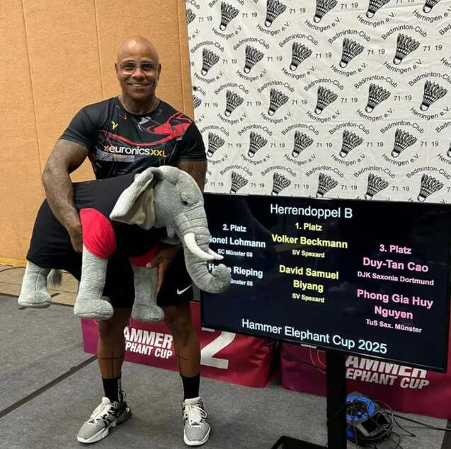 Beim diesjährigen Elephant Cup 2025 siegten Volker und David im B-Feld. Nachdem beide alle Spiele in der Vorrunde gewannen, ging es in der K.O. Runde weiter. Dabei gab man lediglich im Viertelfinale einen Satz ab. Im Finale besiegte man mit taktischer Rafinesse das Duo vom SC Münster und TG Ennigloh glatt in 2 Sätzen. Damit haben beide ebenfalls nicht gerechnet. Entsprechend hat man sich über den Sieg gefreut. Nicht so erfolgreich erging es Christian Lanz und Christian Hüneburg, die bereits in der Vorrunde ausgeschieden waren.