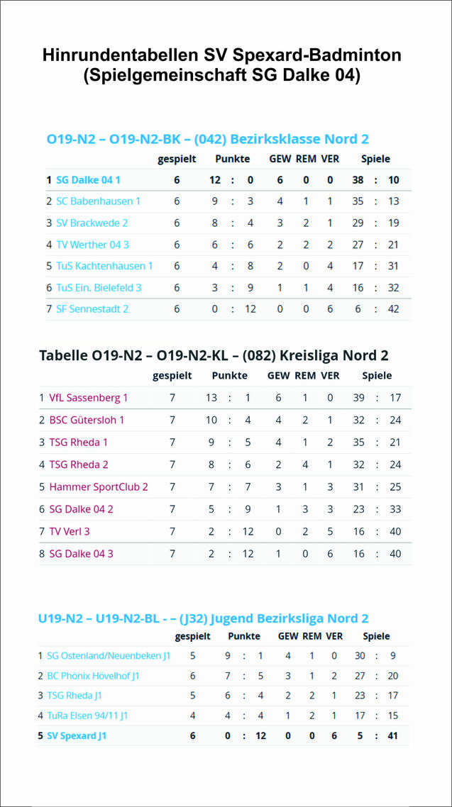 In der Jugendbezirksliga erwischte unsere Mannschaft mit Elsen, Hövelhof und Ostenland eine „Todesgruppe“. Man wusste, dass es diese Saison sehr schwer werden wird. Alle Spielerinnen und Spieler kämpften und gaben ihr Bestes, jedoch belegt die Jugendmannschaft nach der Hinrunde leider den letzten Platz.