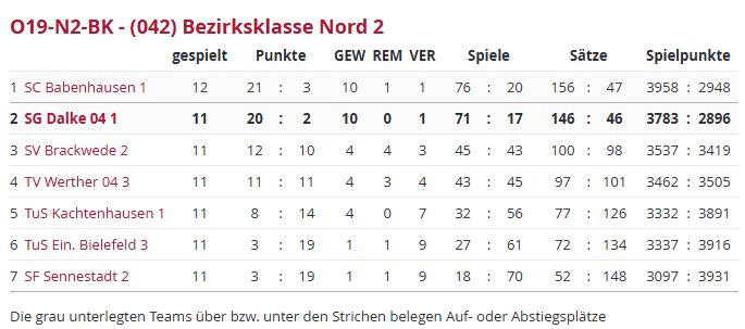Zur Zeit steht unsere Mannschaft auf dem zweiten Tabellenplatz. Der Tabellenerste SC Babenhausen 1 hat aber bereits alle Spiele absolviert und hat dieses Wochenende spielfrei.